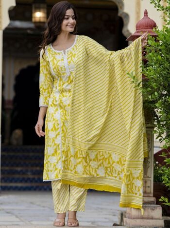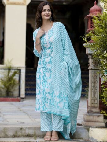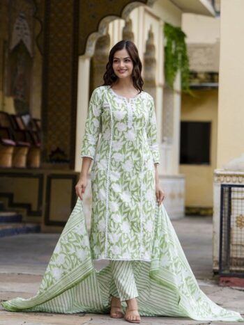 Women Printed Regular Pure Cotton Kurta With Trousers & Dupatta