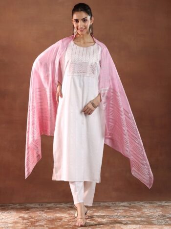 Yoke Design Notch Neck Kurta With Trousers & Dupatta