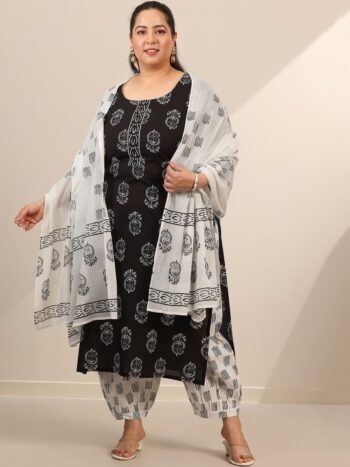 Plus Size Floral Printed Straight Kurta With Salwar & Dupatta