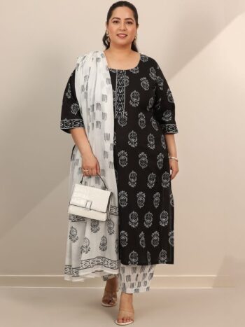 Plus Size Floral Printed Straight Kurta With Salwar & Dupatta