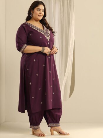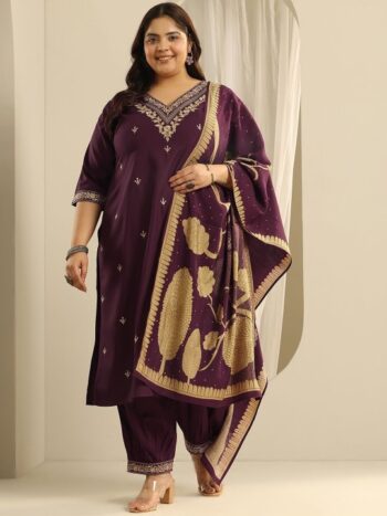 Women Plus Size Floral Embroidered Kurta with Salwar & Dupatta