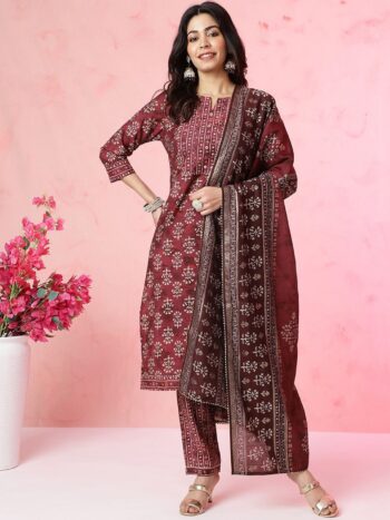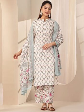 Floral Printed Straight Kurta with Trouser & Dupatta