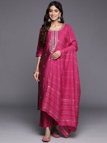 Ethnic Motifs Printed Chanderi Silk Kurta with Trousers & With Dupatta