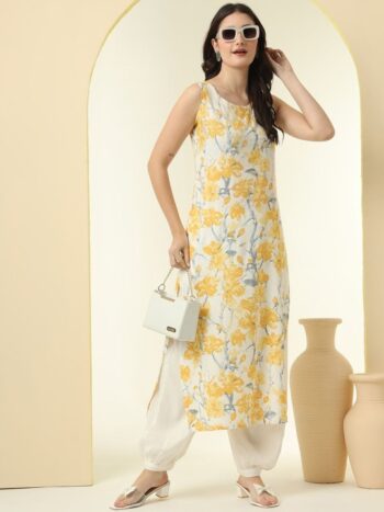 Floral Printed Round Neck Straight Kurta With Salwar