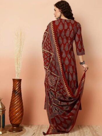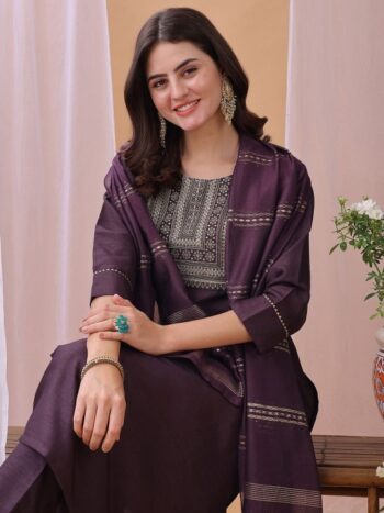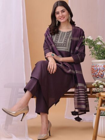 Women Woven Design Embroidered Kurta with Trousers & Dupatta