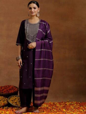 Ethnic Motifs Embroidered Sequinned Straight Kurta with Trouser & Dupatta