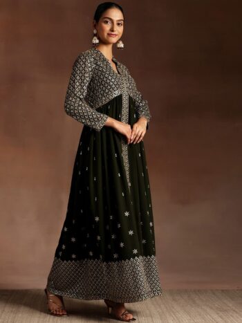 Ethnic Motifs Embroidered Georgette Sequinned A-Line Kurta Set