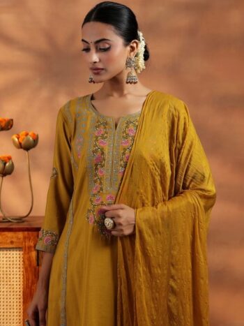 Floral Yoke Design Regular Zari Kurta with Trousers & Dupatta