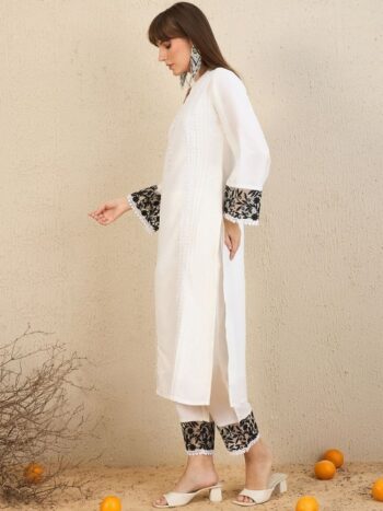 Floral Embroidered Panelled Beads and Stones Straight Kurta with Trousers