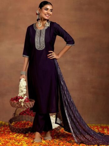 Floral Embroidered Regular Sequinned Straight Kurta With Trousers & Dupatta