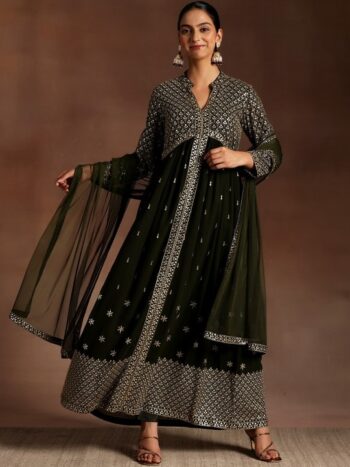 Ethnic Motifs Embroidered Georgette Sequinned A-Line Kurta Set