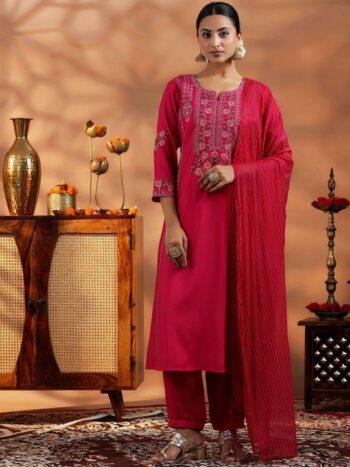 Women Floral Yoke Design Regular Thread Work Kurta with Trousers & With Dupatta