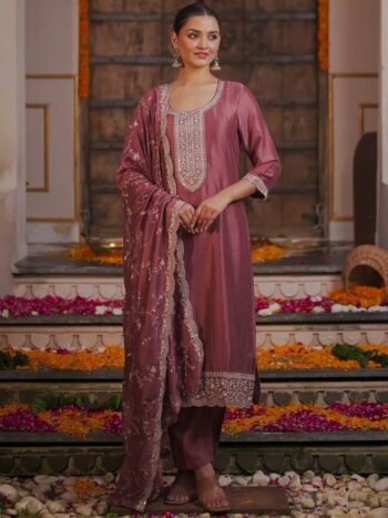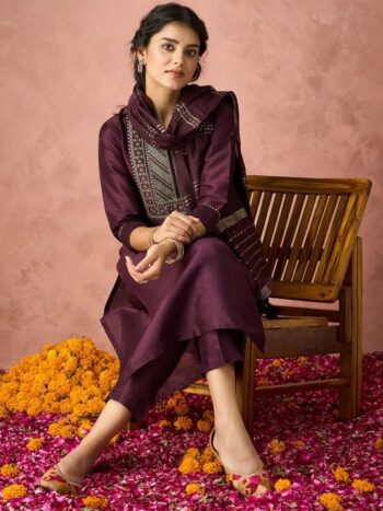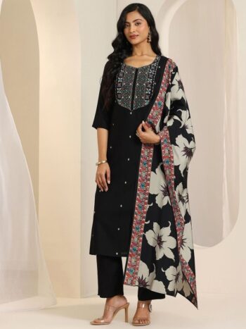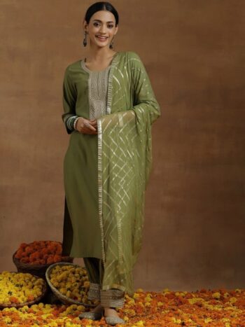 Ethnic Motifs Embroidered Sequinned Straight Kurta With Trouser & Dupatta