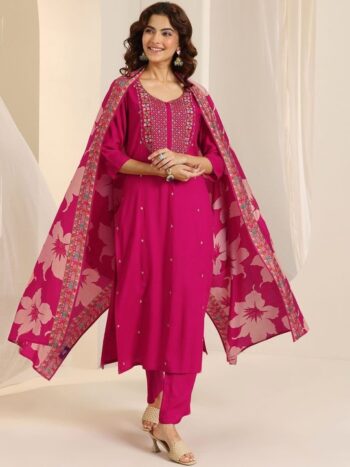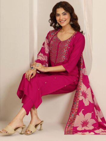 Floral Printed Straight Kurta With Trousers & Dupatta