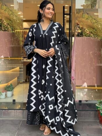 Floral Printed Anarkali Kurta & Trousers With Dupatta