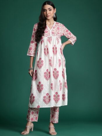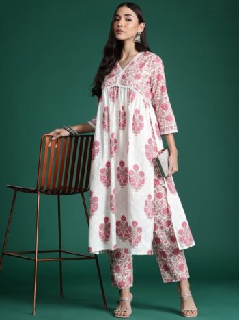 Women Floral Printed Empire Pure Cotton Kurta with Trousers