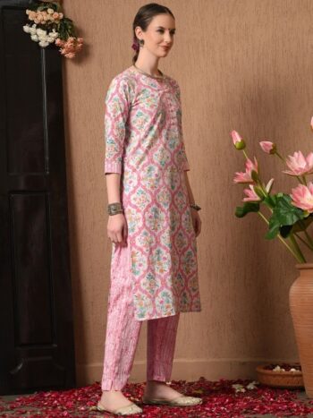 Women Floral Printed Regular Pure Cotton Kurta with Trousers & With Dupatta