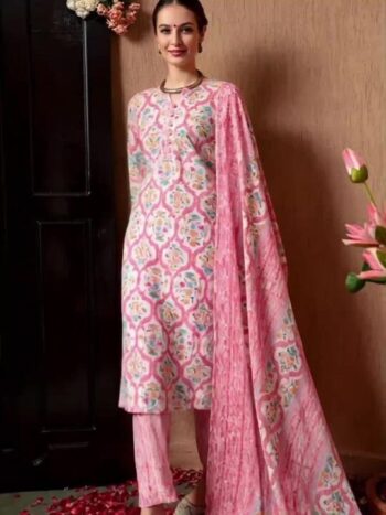 Women Floral Printed Regular Pure Cotton Kurta with Trousers & With Dupatta