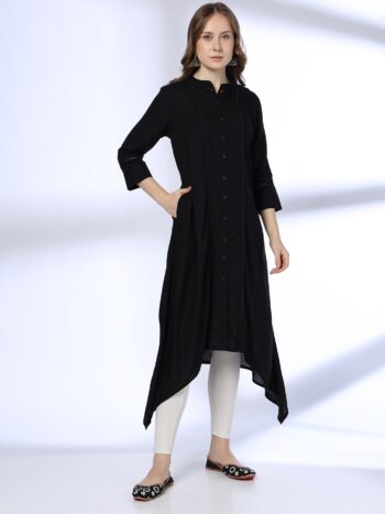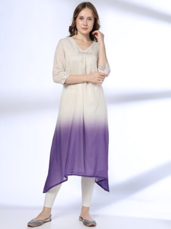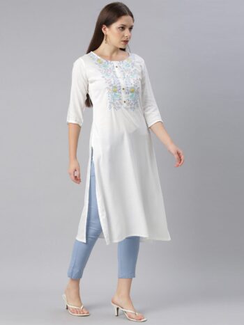 Geometric Embroidered Thread Work Liva Straight Kurta