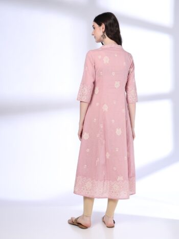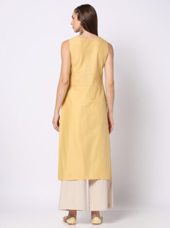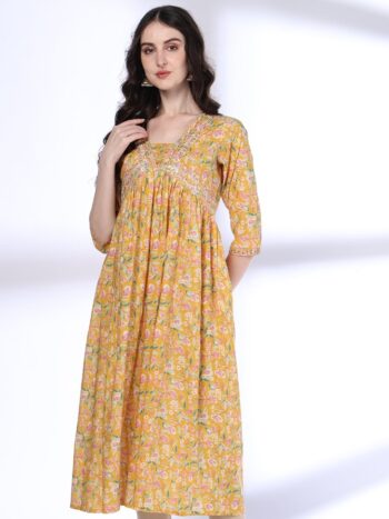 Floral Embroidered Round Neck Pure Cotton Straight Kurta