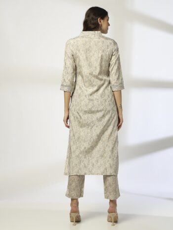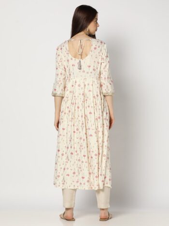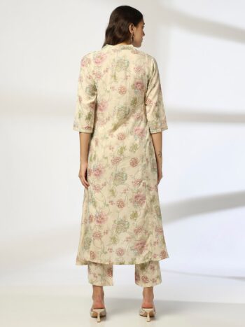 Cream Floral Printed Mandarin Collar Straight Kurta