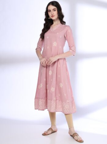 Floral Embroidered Round Neck Pure Cotton Straight Kurta