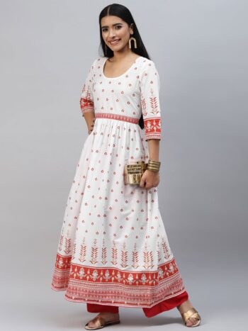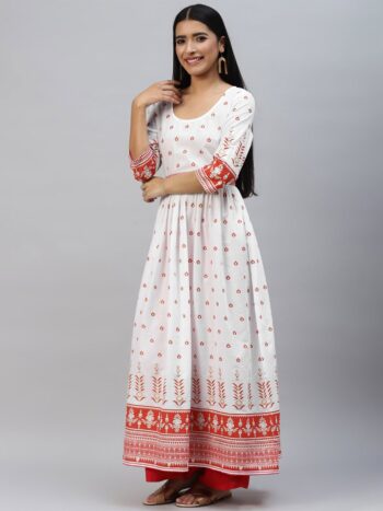 Women Geometric Embroidered Thread Work Anarkali Kurta