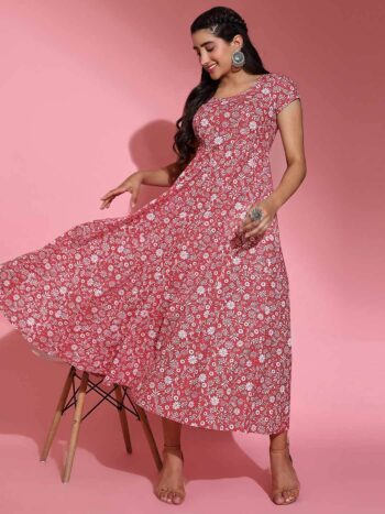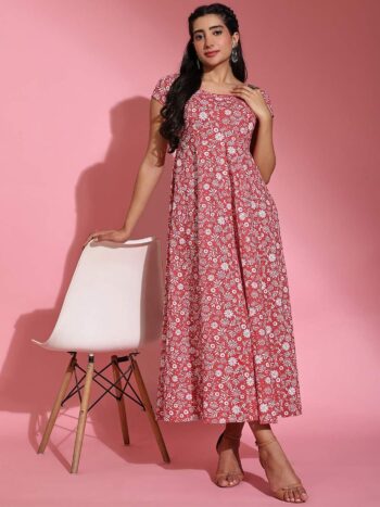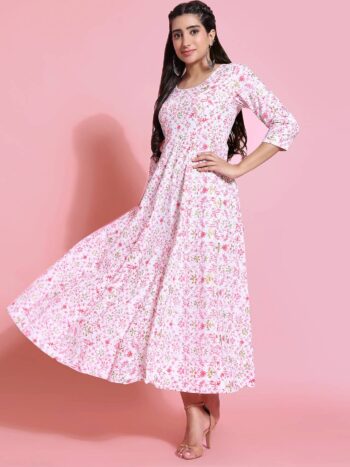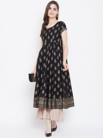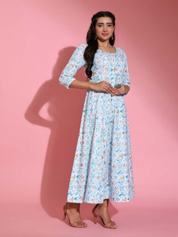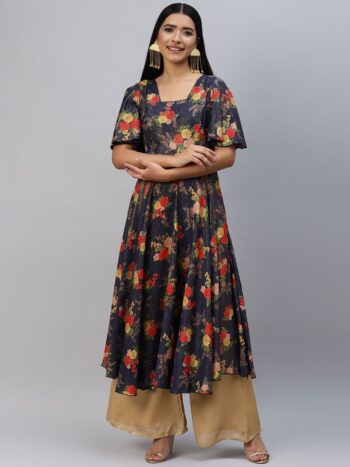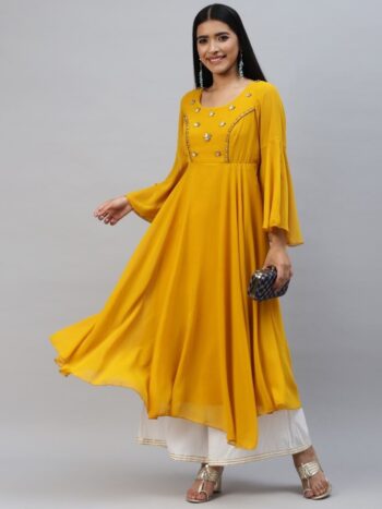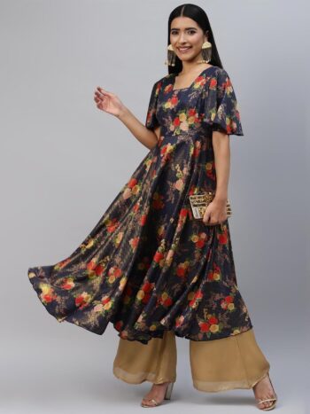 Women Flared Sleeves Thread Work Anarkali Kurta