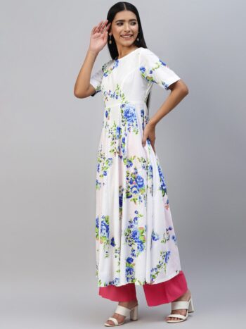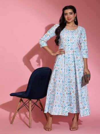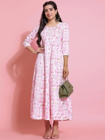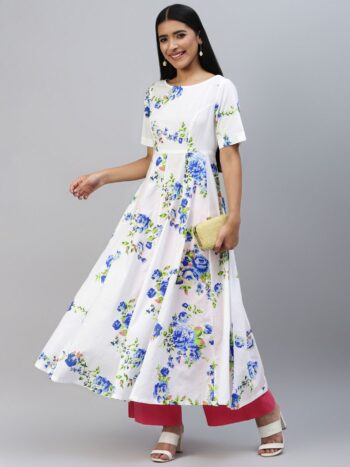 Floral Embroidered Sequinned Cotton Pleated Straight Kurta