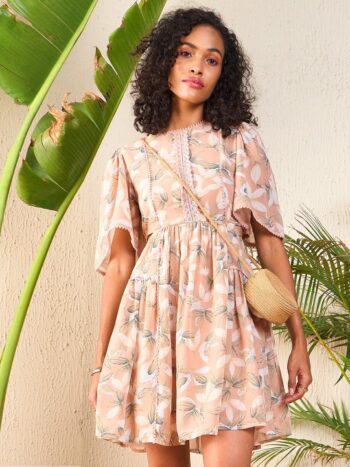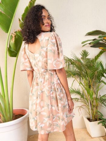 Floral Print Flared Sleeve Cut Out Georgette Fit & Flare Dress