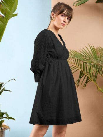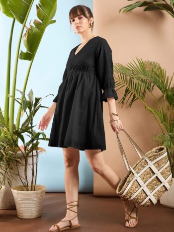 Black Pure Cotton A-Line Dress