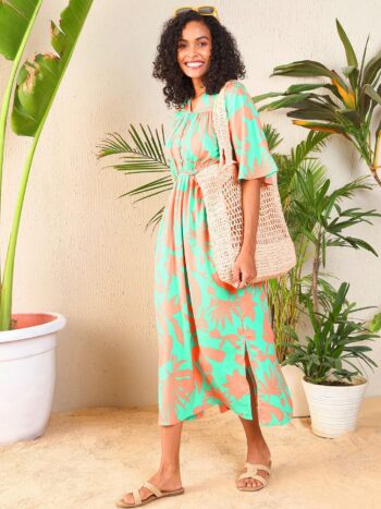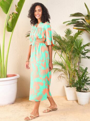 Floral Printed Flared Sleeves Cut Out Georgette A-Line Midi Dress