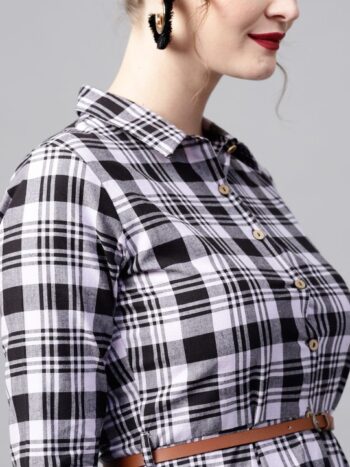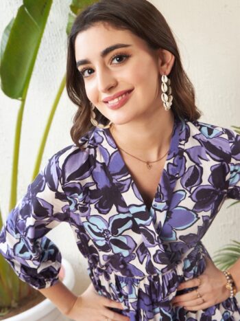 Purple Floral Printed Tiered Pure Cotton Fit & Flare Dress