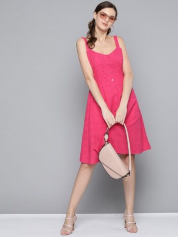 Pink Embroidered Pure Cotton Schiffli A-Line Dress
