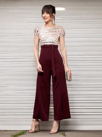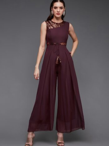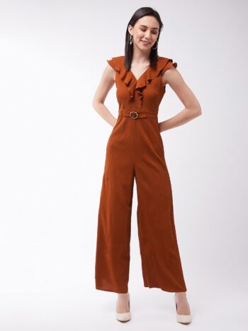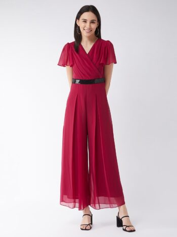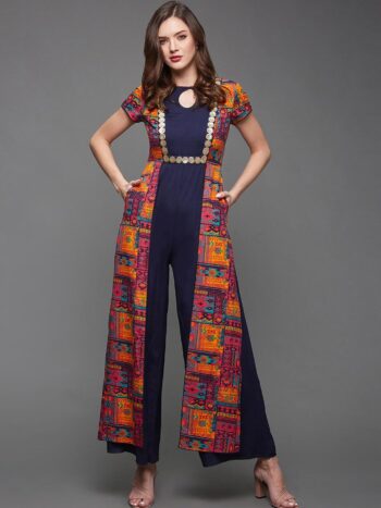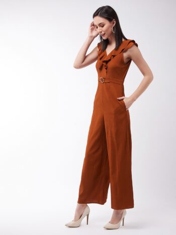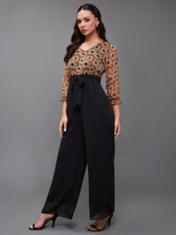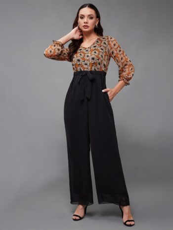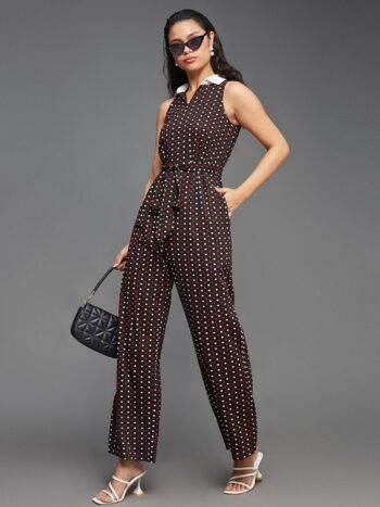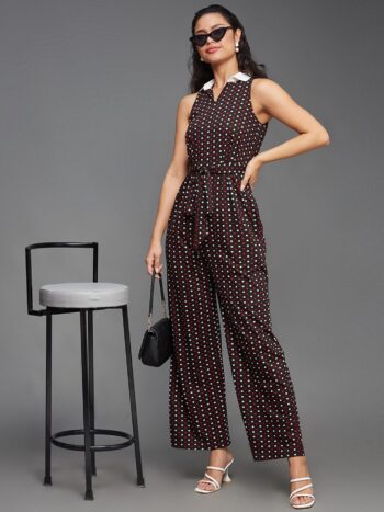 Polka-Dot Print Jumpsuit with Polo-Neck & Tie-Front