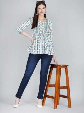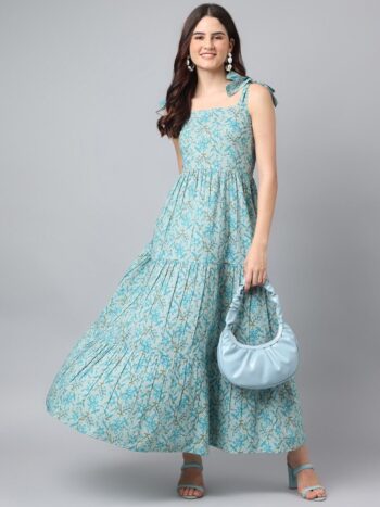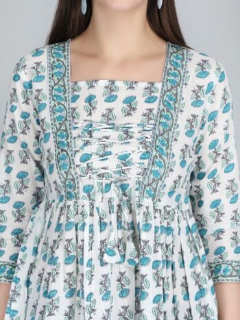 Floral Embroidered Thread Work Empire Puff Sleeves Anarkali Kurta
