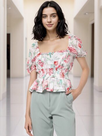Floral Print Smocked Peplum Top