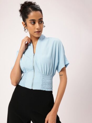 Quirky Chic Conversational Print Shirt-Style Crop Top
