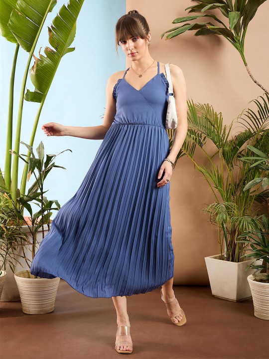Be the first to review “Shoulder Strap Pleated A-Line Maxi Dress”
