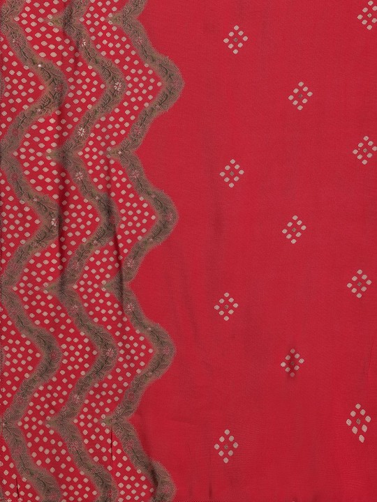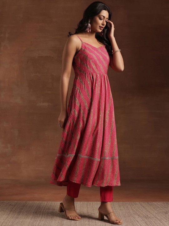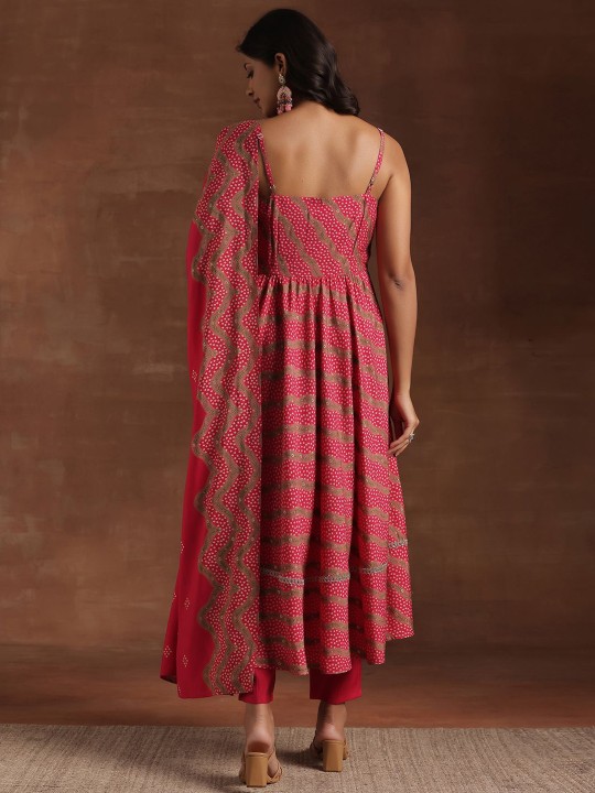 Bandhani Printed Pleated Shoulder Straps Anarkali Kurta Set
