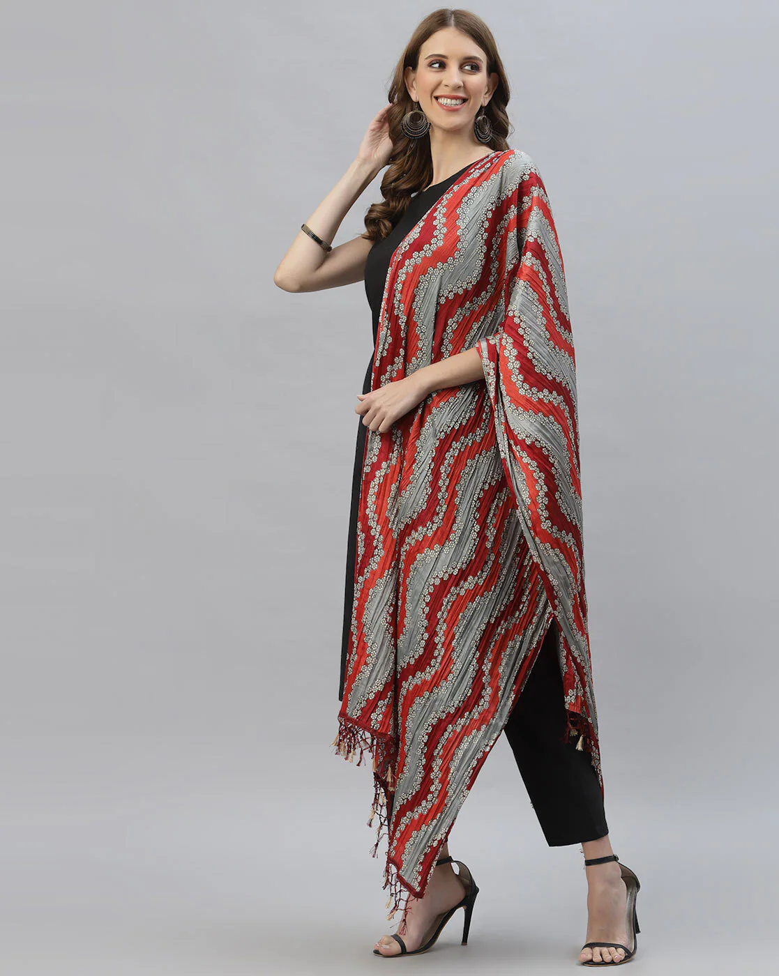 Black Striped Panelled Kurti with Trousers & With Dupatta