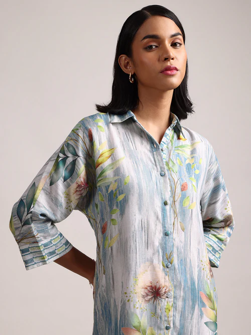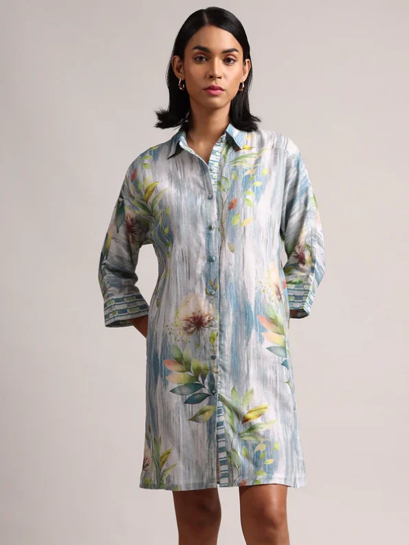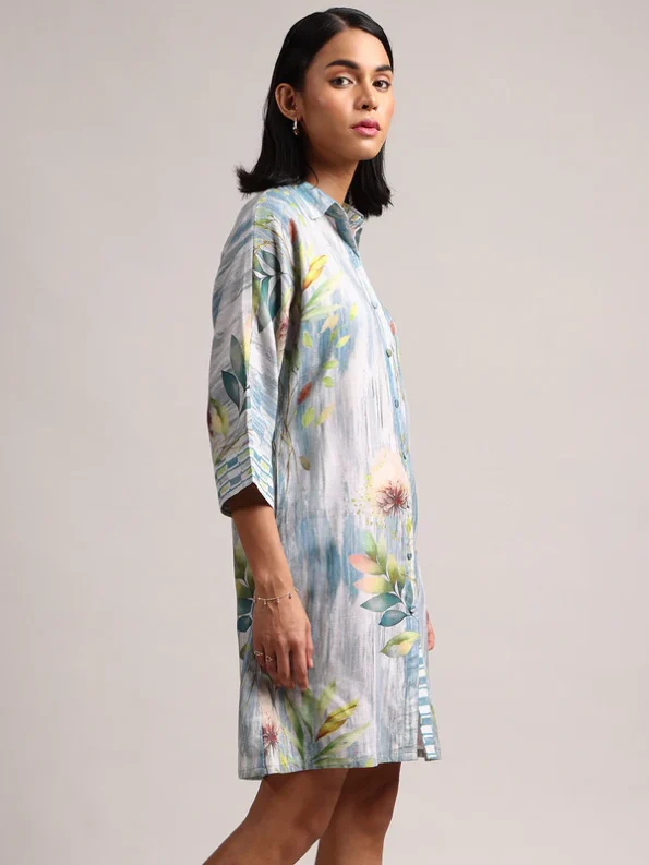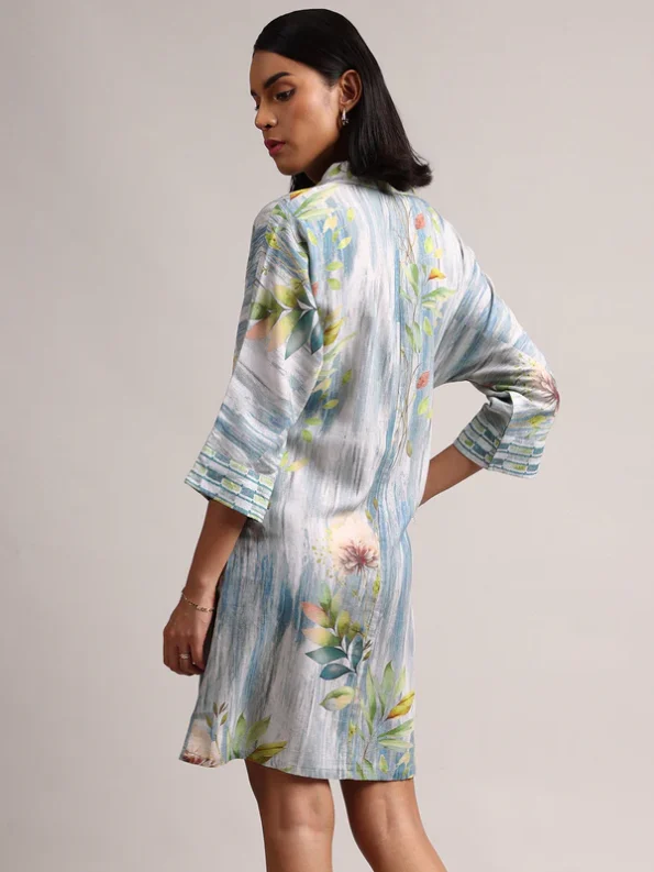 Be the first to review “Blue Cotton Linen Floral Printed Shirt Dress”