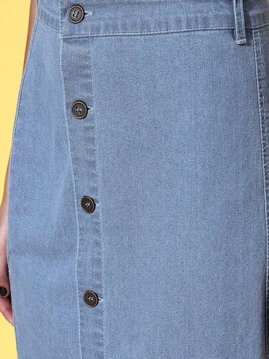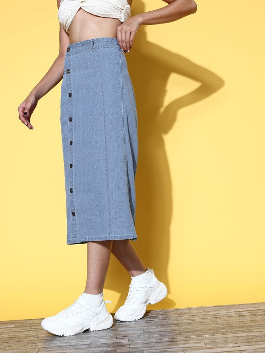 Curate a cool and classy look by opting for this fashionable skirt. Tailored with an alluring solid pattern and midi length, this skirt is a must-have.