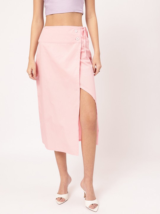 Step into a dreamy state of mind with this wrap midi. In a soft dusty pink, this skirt wraps you up in effortless style, ready to feel flirty and fabulous.