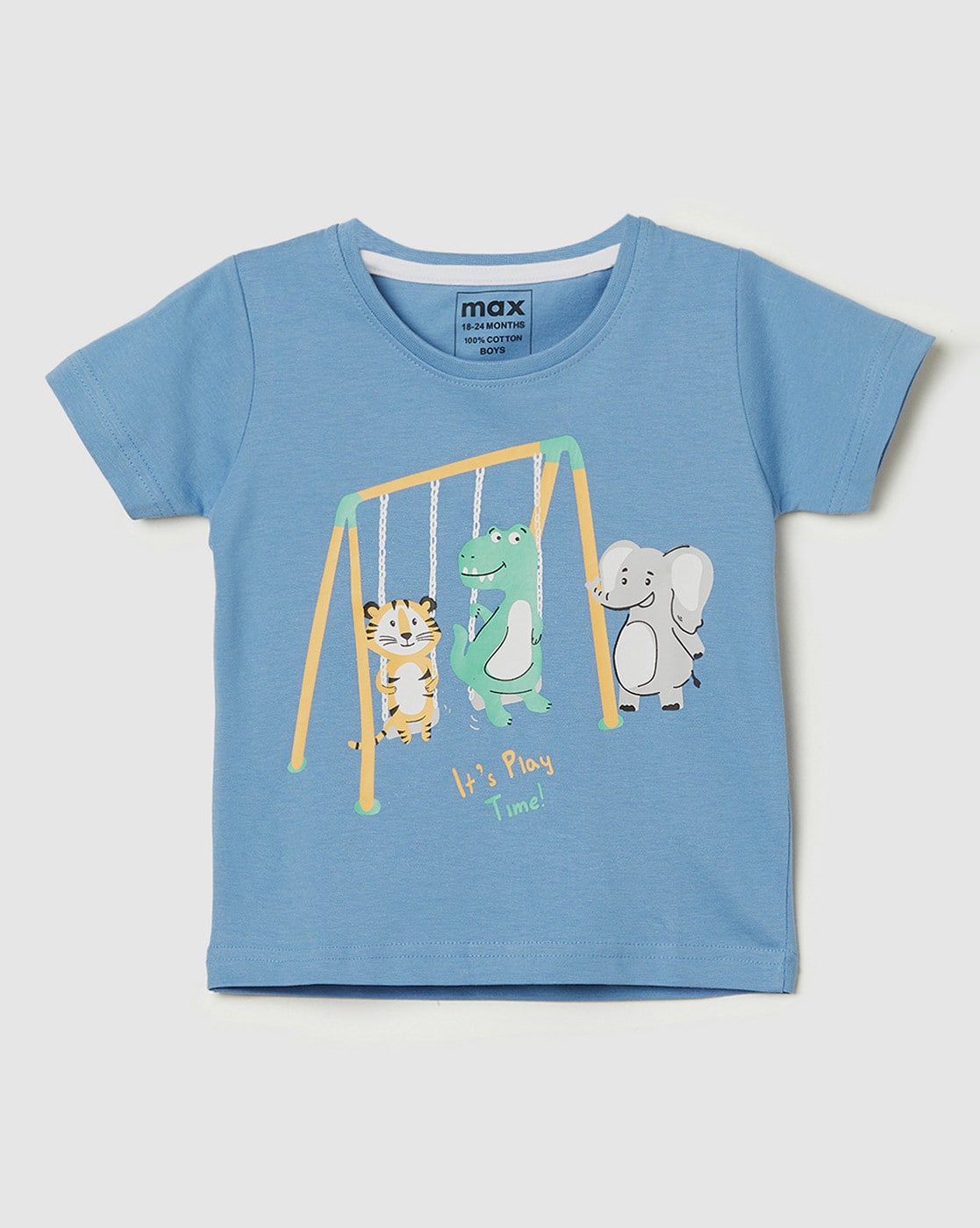 Boys Graphic Print Regular Fit Round-Neck T-Shirt