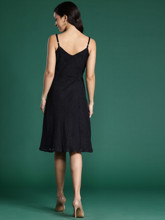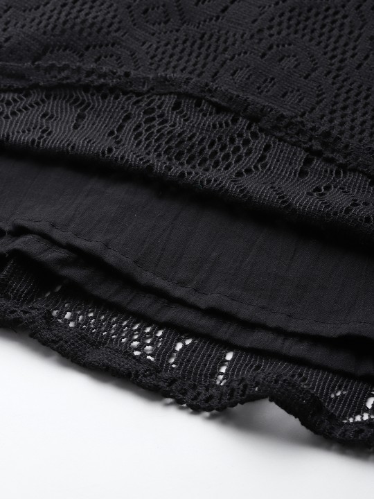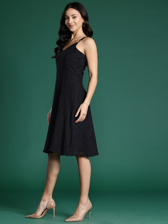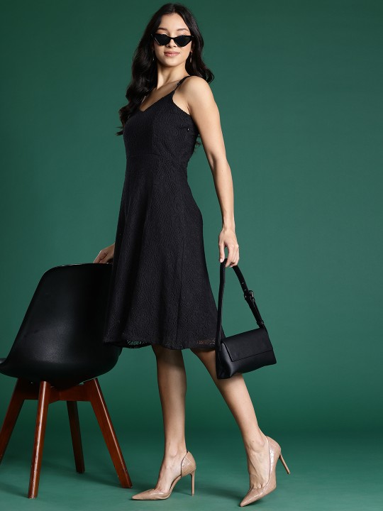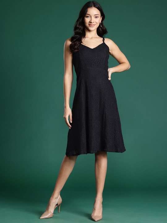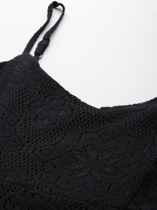 - Black crochet knit a-line dress