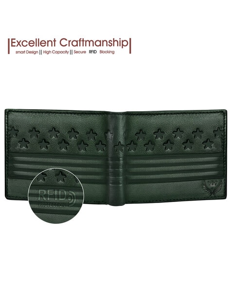 RFID Protection: This technology prevents digital thieves from stealing the owner’s personal identity and credit card information. The wallet is enhanced with RFID lining that blocks radio frequency to protect from wireless pickpocketing.