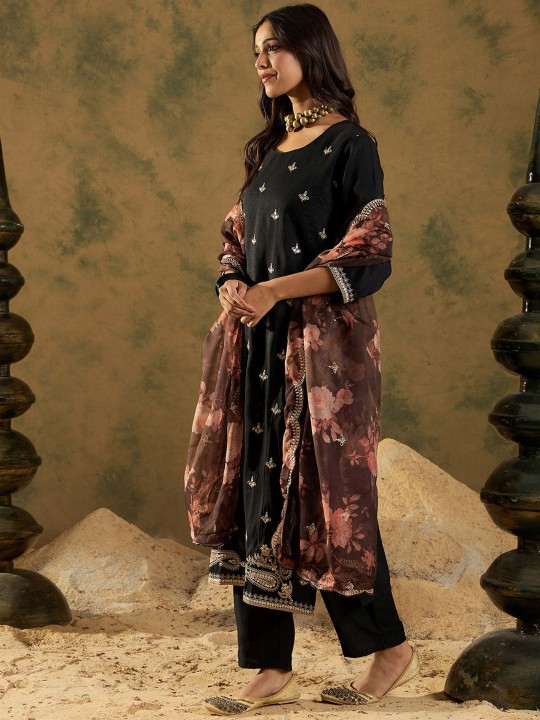Ethnic Motifs Embroidered Kurta with Trousers & Dupatta