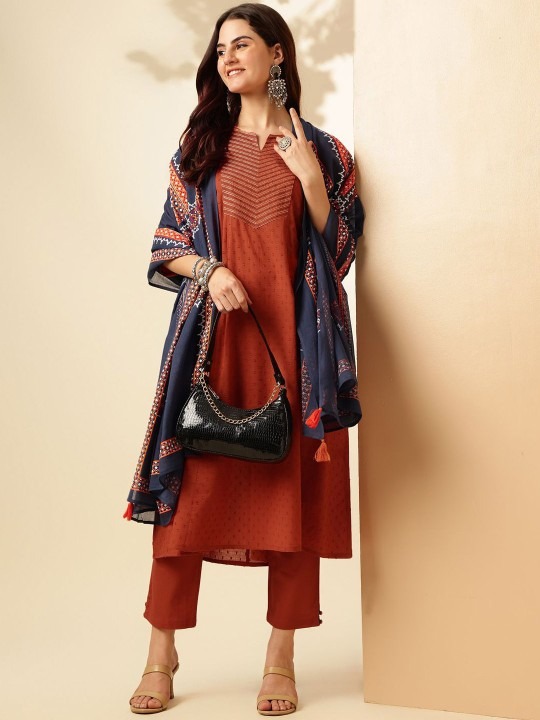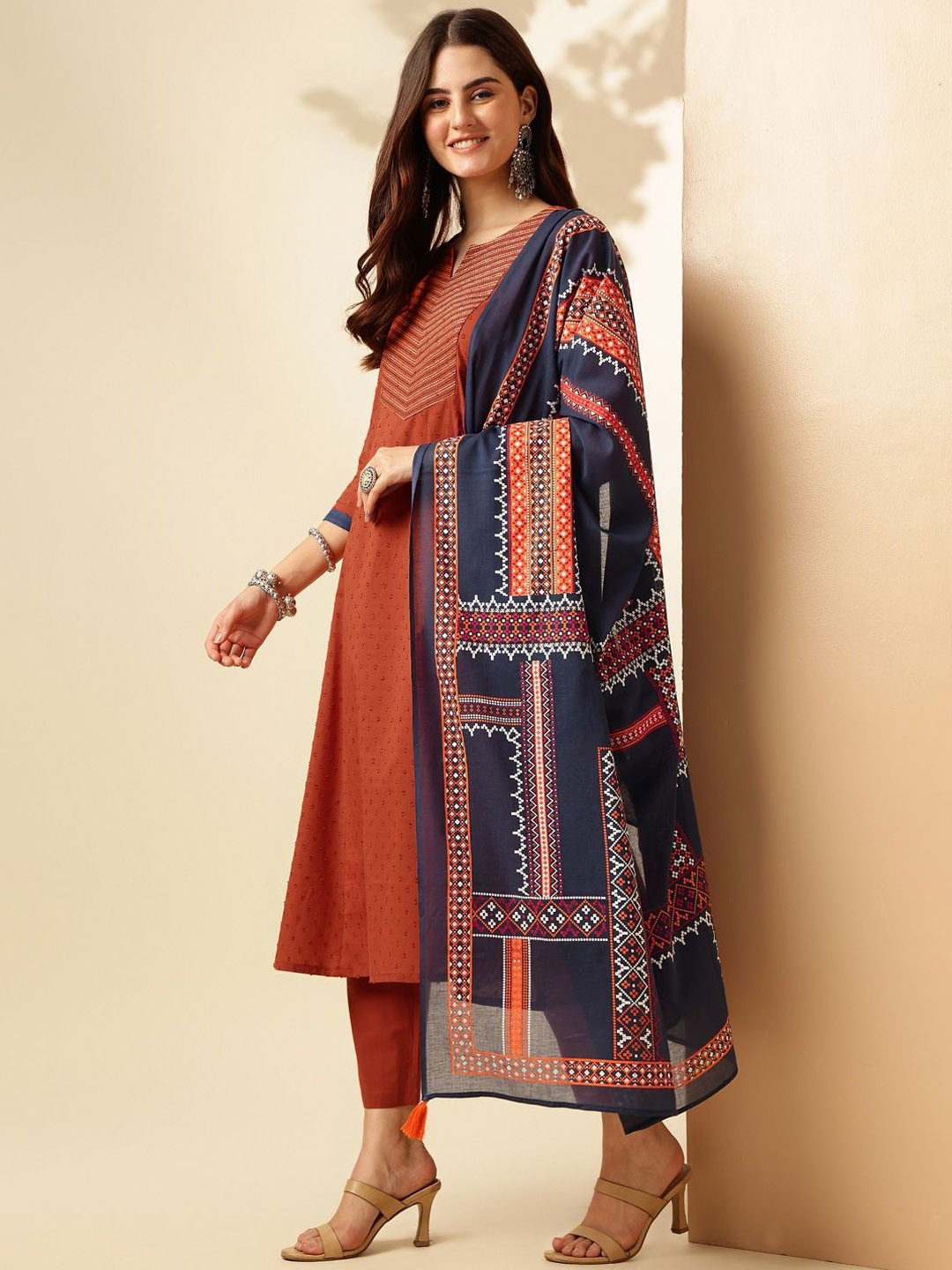 Ethnic Motifs Panelled Pure Cotton Kurta with Trousers & With Dupatta
