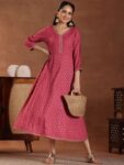 Pink ethnic motifs print a-line dress